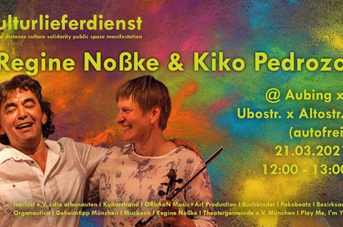 Kulturlieferung mit Kiko in Aubing 21. März 2021Kiko Pedrozo, Vergangene KonzerteRegine Nosske Frühlingsanfang: am 21.3.2021 von 12-13 Uhr spielten Kiko Pedrozo und Regine Noßke bei sibirischen Temperaturen in Aubing. (zum Weiterlesen auf das Bild klicken)